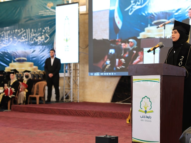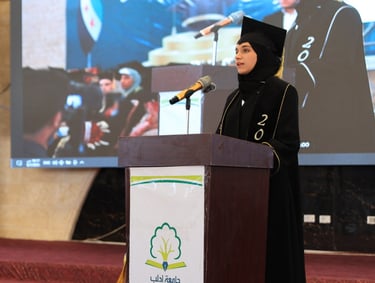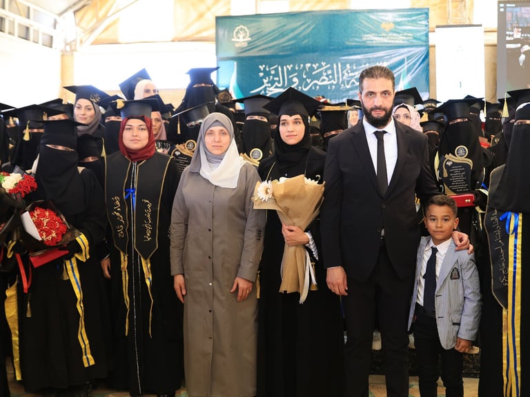 The most recent event took place on September 7, 2025, at the Faculty of Arts and Humanities of the University of Idlib during the “Victory and Liberation” graduation ceremony. Latifa al-Droubi delivered a speech in which she said: “Today, I stand before you not as the First Lady, but as a Syrian student who carried a dream in her heart and pursued it despite the challenges” . During this ceremony, her husband presented her with her master’s degree in Arabic language and literature, and it marked the first public appearance of one of their children.