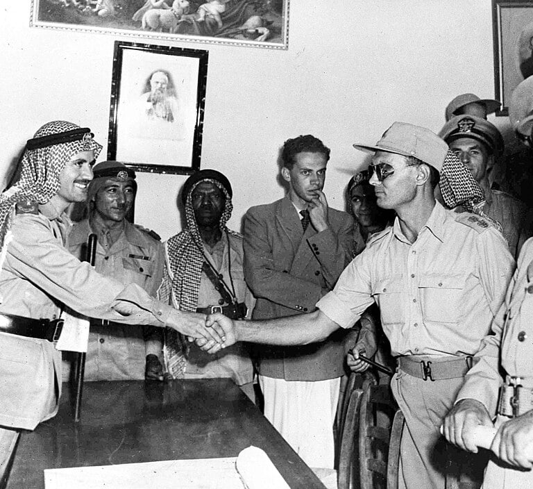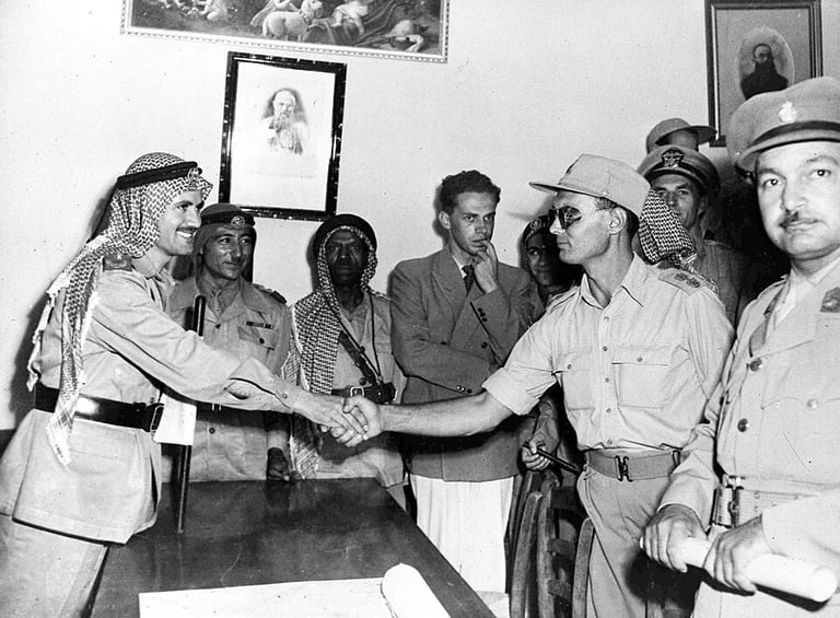 Abdullah el-Tell and Moshe Dayan reach cease-fire agreement, Jerusalem, 30 November 1948
