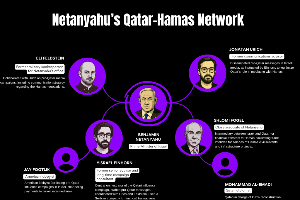 Among them, Eli Feldstein, former military spokesperson at the Prime Minister’s Office, and Jonatan Urich, Netanyahu’s communications adviser, were indicted in March 2025 for leaking classified documents, maintaining contact with a foreign agent, and compromising state security. Two other figures were involved in Qatargate: Yisrael Einhorn, a former advisor to Netanyahu, who coordinated the pro-Qatar media campaign and guided the dissemination of messages; and Jay Foutlik, an American lobbyist, who supported the financial and strategic links between Qatar and the Israeli intermediaries.
